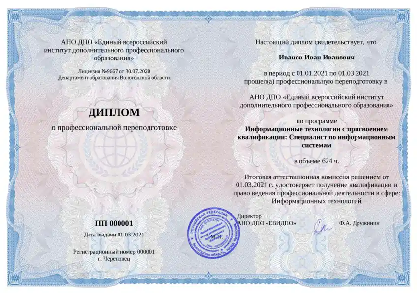 2. Оригиналы образовательных документов, договор, заявку на зачисление, протоколы итоговой аттестации и акты выполненных работ мы пришлем вам удобным способом.